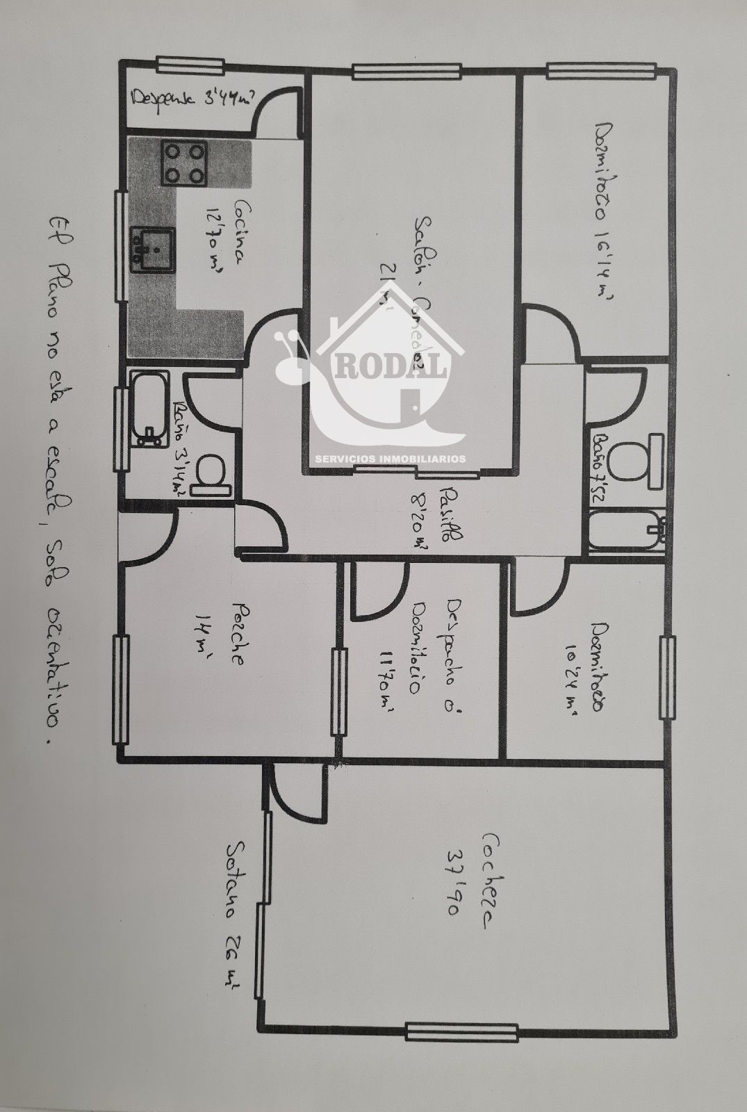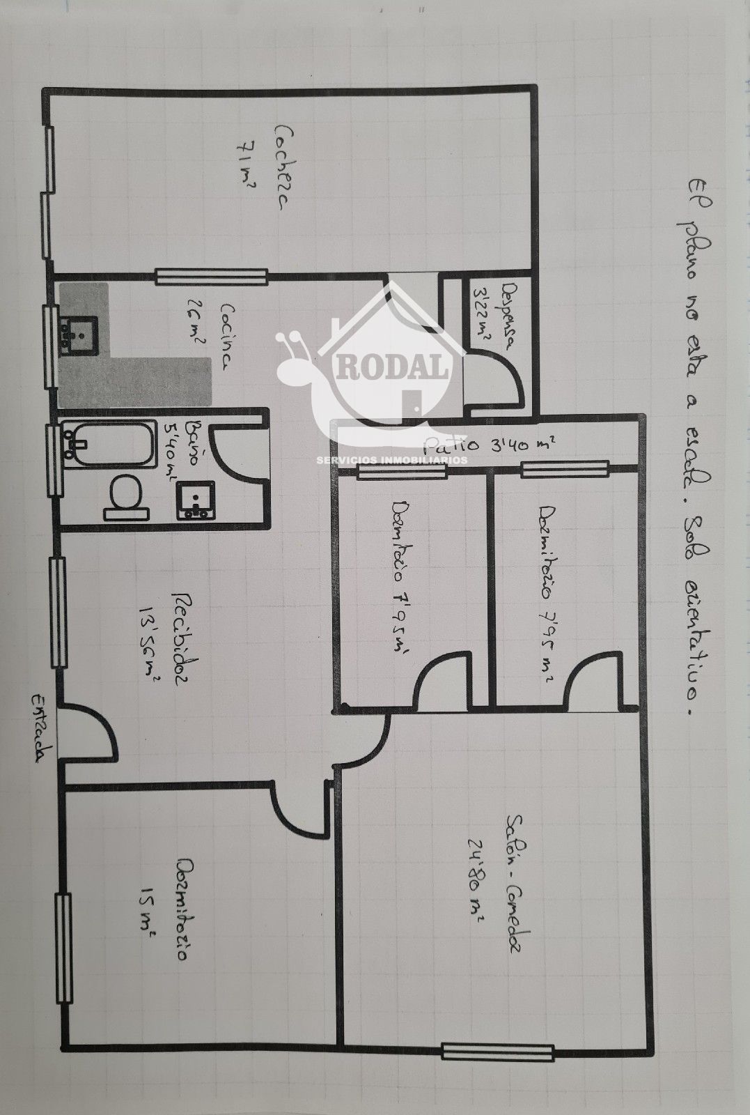 3 dormitorios, baño grande, amplio salón independiente, cocina-comedor con despensa, recibidor y enorme cochera.