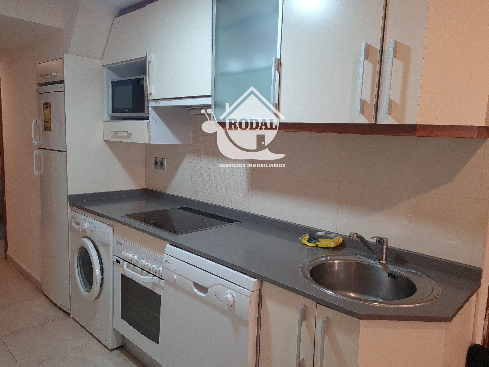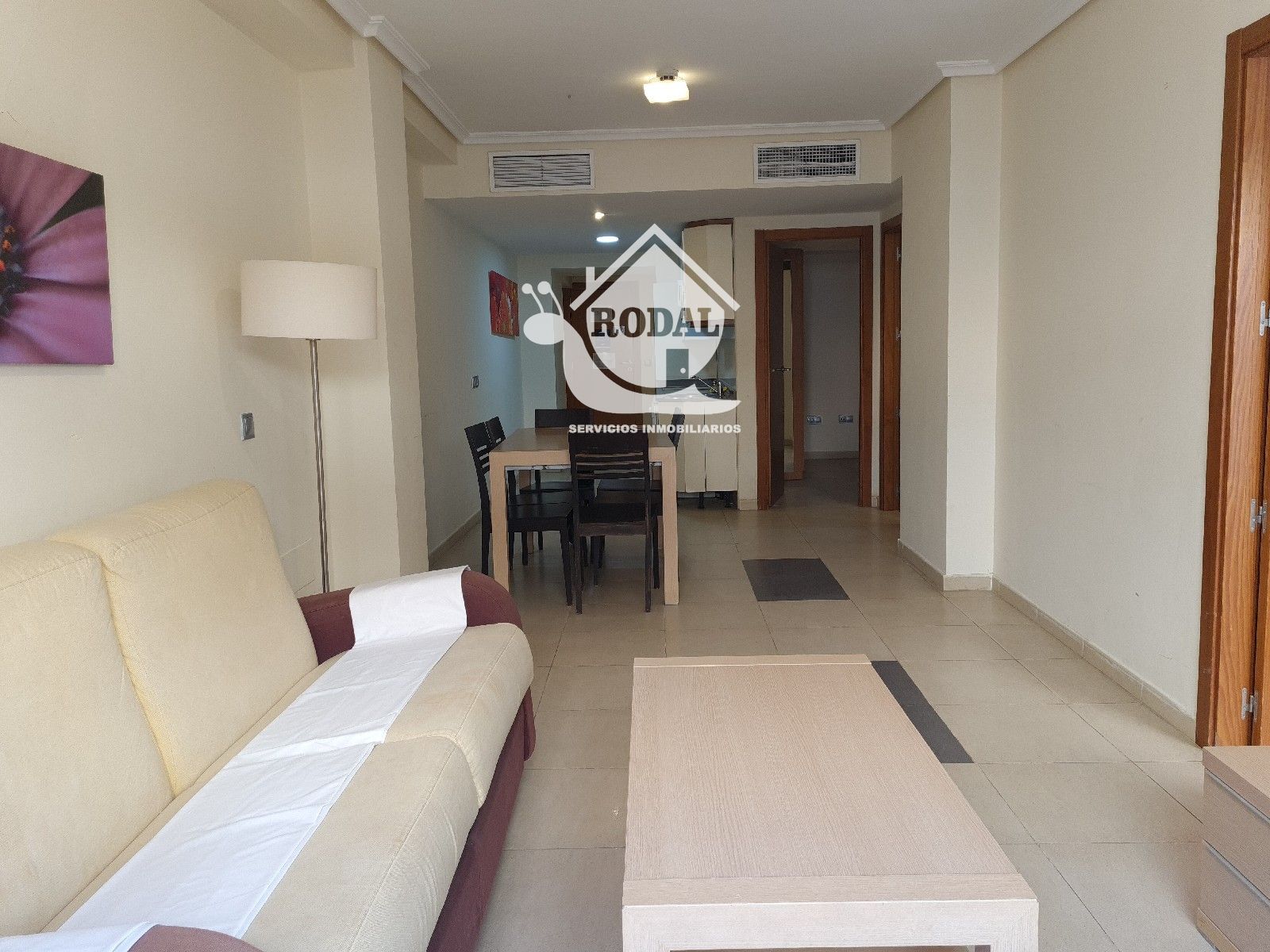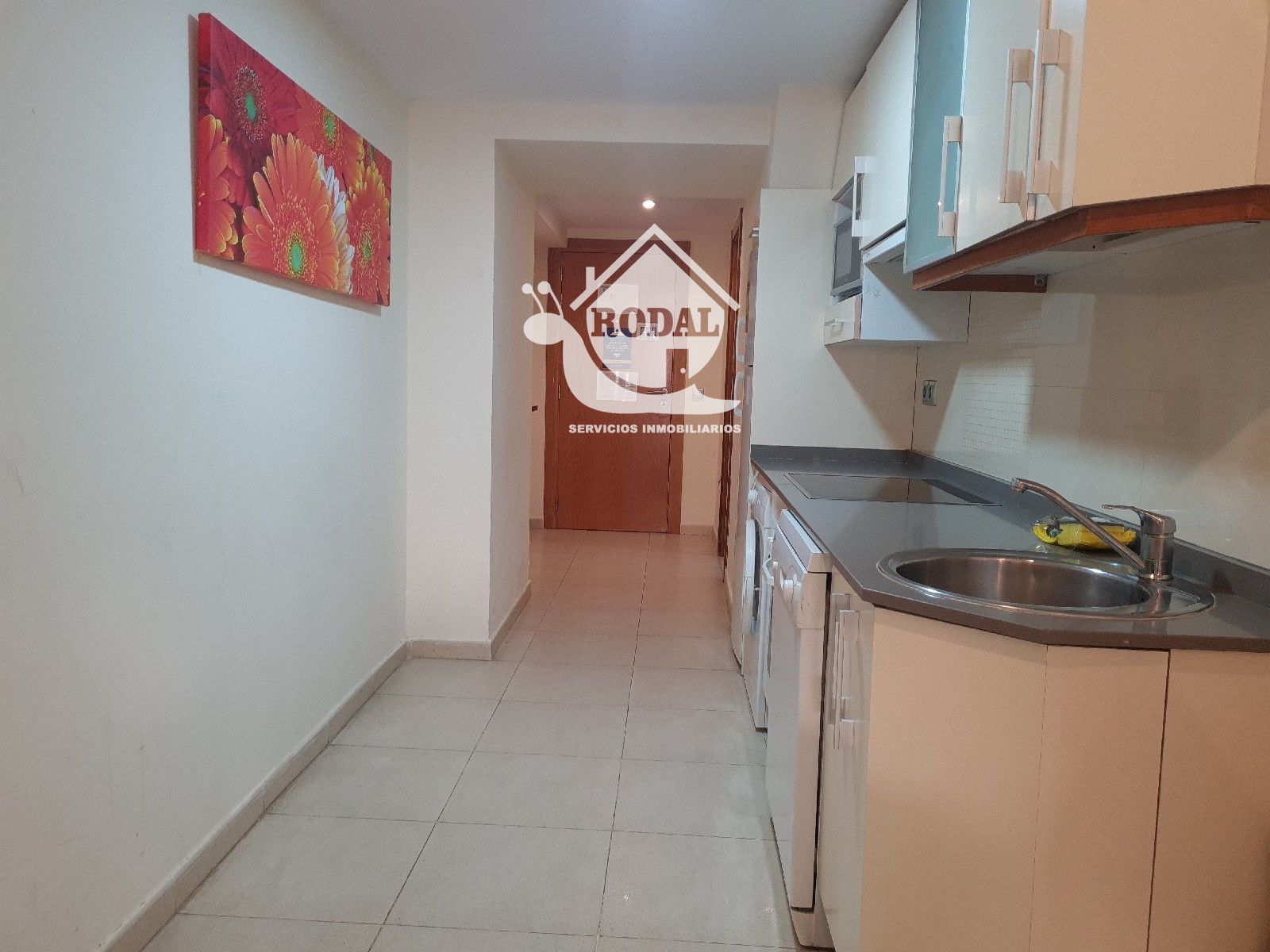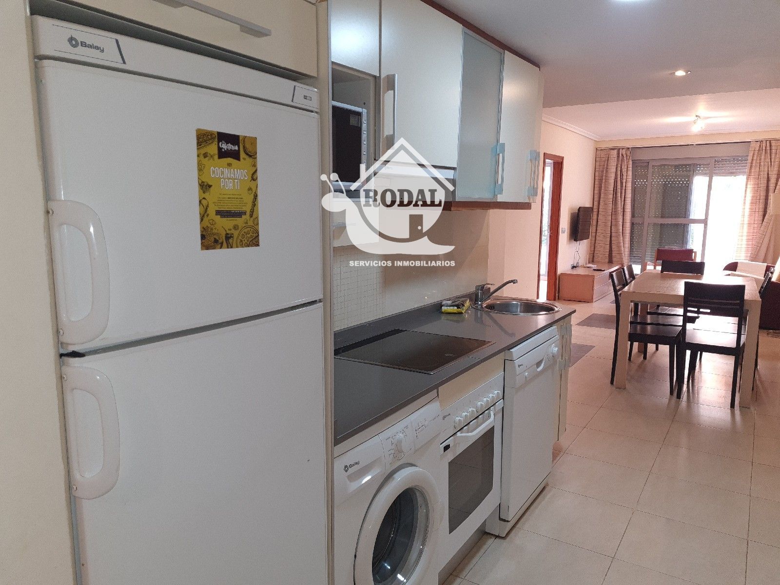 Salón-comedor con cocina integrada, creando un espacio moderno, funcional y muy luminoso